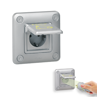 - Ausführung: 1-phasig, Schutzart IP44 (IP55 bei geschlossenem Deckel). Schlagefestigkeit IK08 (Aufputz Version, Kunststoff) und IK10 ( Unterputz Version, Metall-Druckguss)